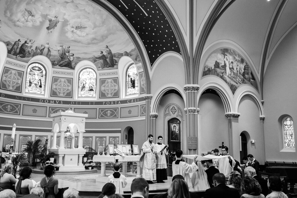 Planning your Catholic wedding timeline well in advance (and communicating the timeline to all the important people – such as bridal party and vendors) is one of the best ways to reduce stress on your big day. If you are working with a professional photographer, they will help you with this and they should let you know how long you need for photographs during each section of the day. A rough timeline of length of events is: