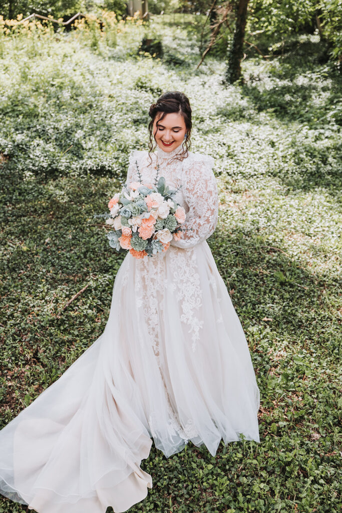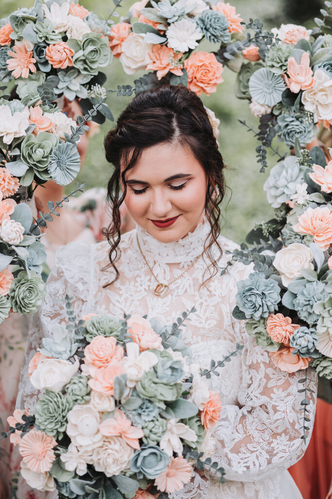 The color palette of peach, mint green, and steel blue created a stunning vintage pastel theme throughout the celebration. One detail that caught my eye was the gorgeous wood flowers. These forever blooms from Sola Wood Flowers looked absolutely amazing and will serve as lasting keepsakes.