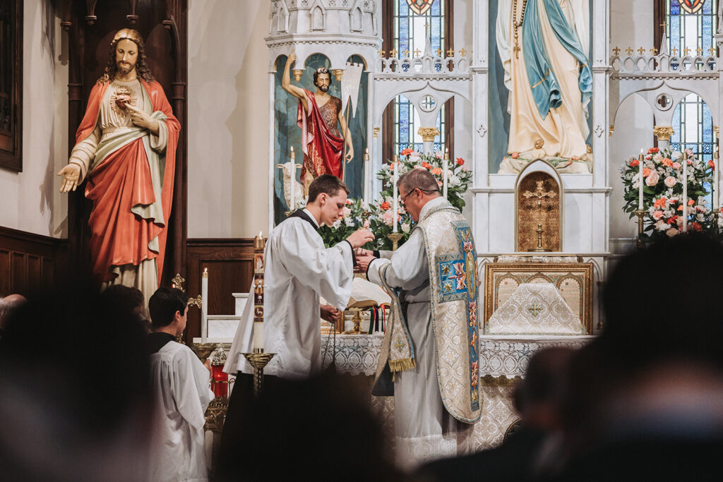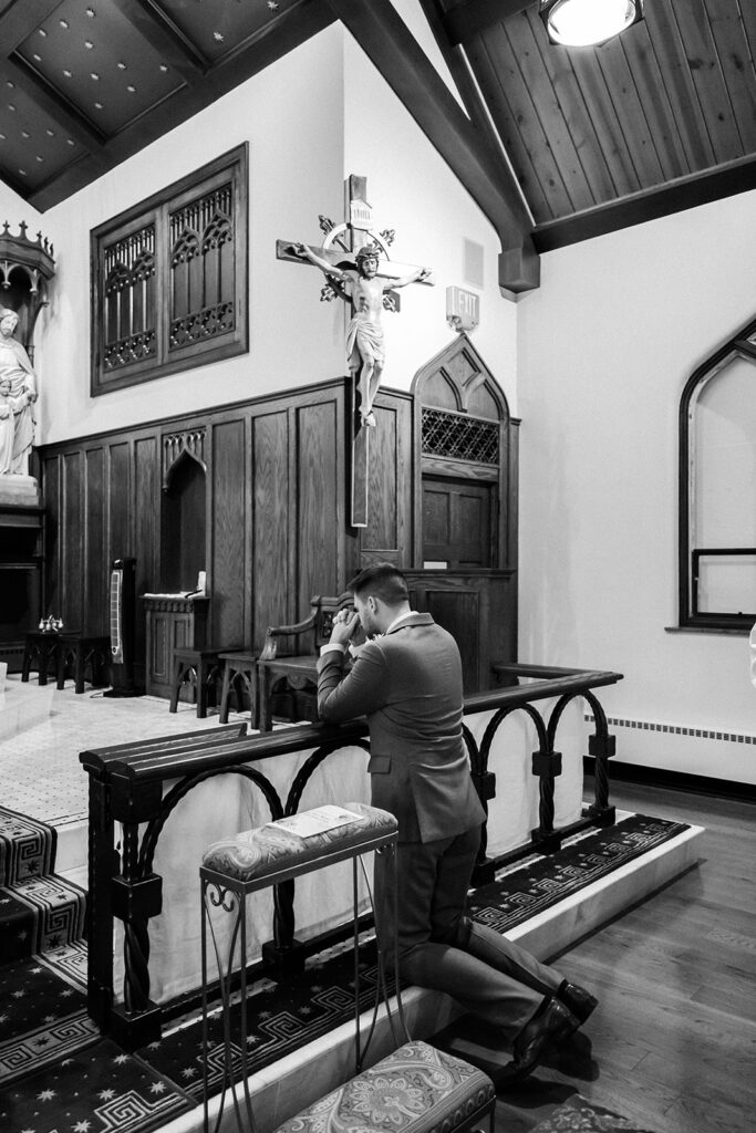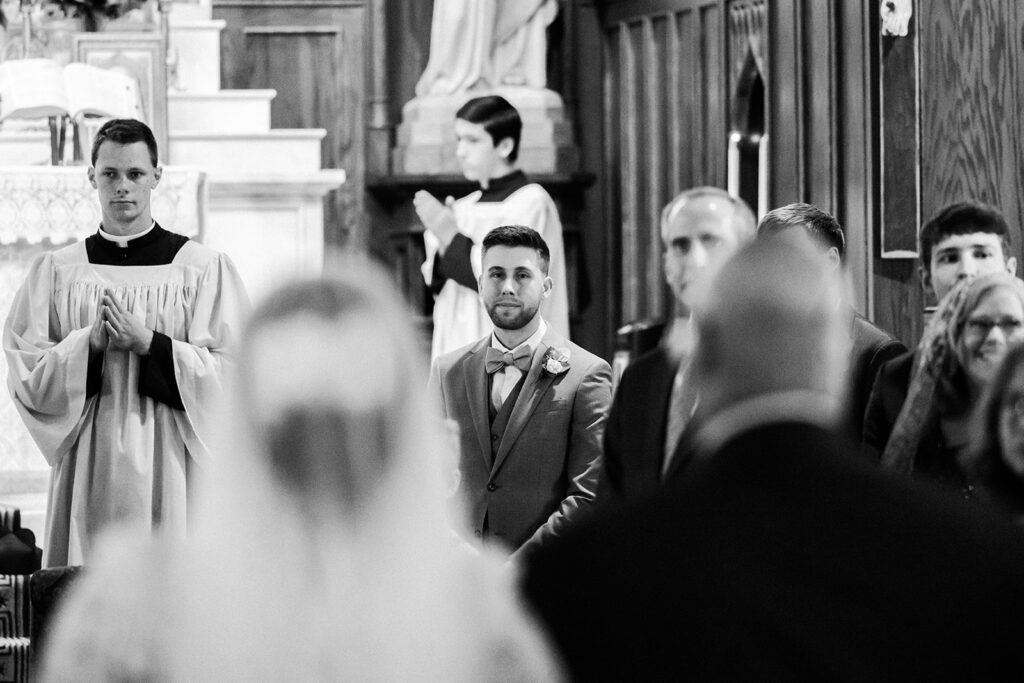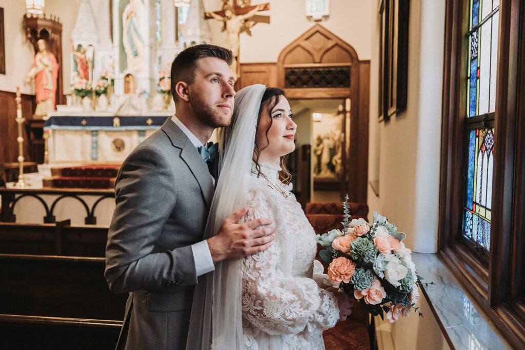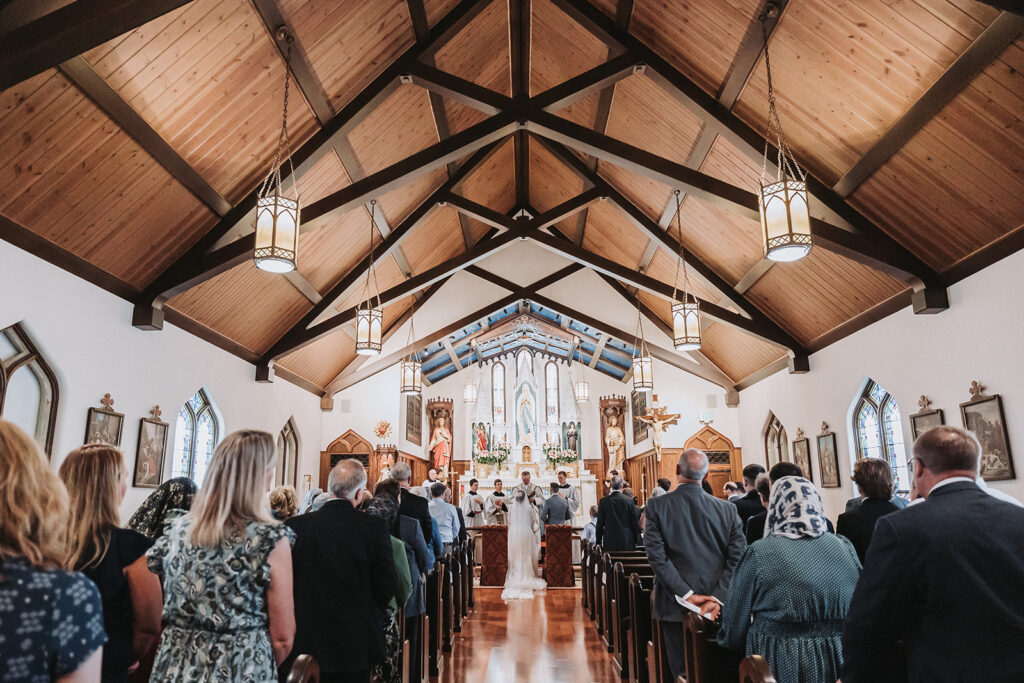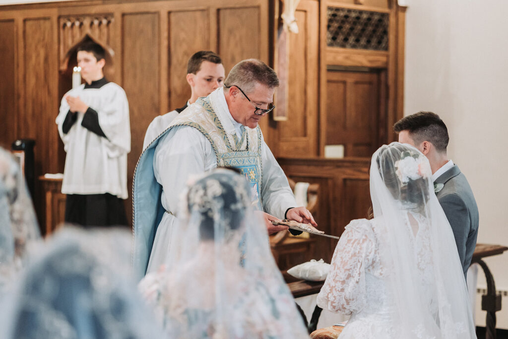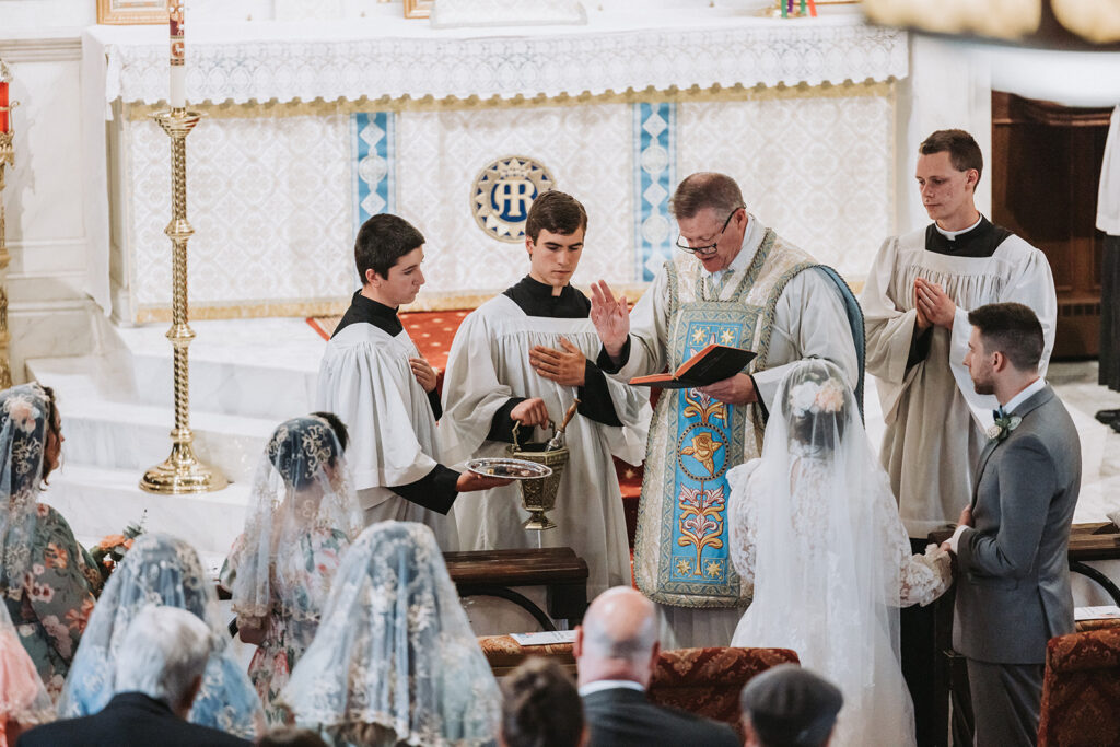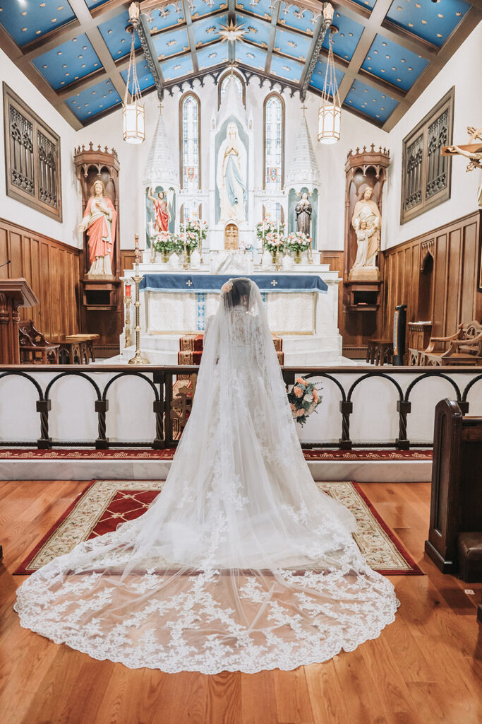 The beautiful architecture, traditional altar, and reverent atmosphere make Our Lady of Lourdes Parish a meaningful location for couples wanting a traditional Catholic ceremony (this particular wedding was a Latin Mass wedding!)